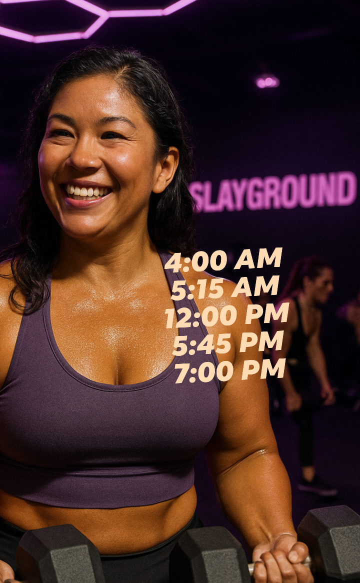 The SLAYGROUND FIT CLUB environment cultivates relentless support, camaraderie, and sheer accountability for our fellow gym-mates and fellow-trainees with similar goals! You will NEVER be left behind here!